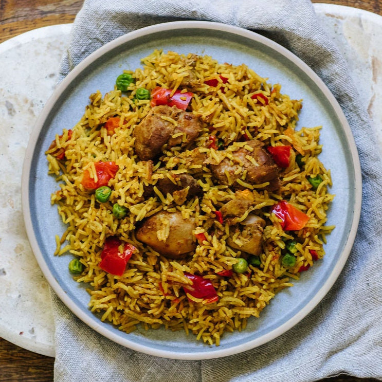 A traditional Nepalese dish of free range chicken, aromatic spices and fried rice.